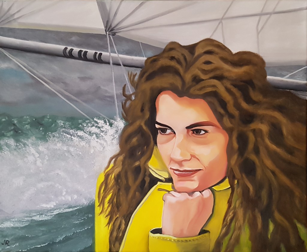 Huile sur toile 50 X 61 Florence Arthaud, portrait de l’éternelle « Petite Fiancée de l’Atlantique » Une légende de la voileLe 18 novembre 1990, elle entre dans la légende ! Âgée de 33 ans, la navigatrice au franc-parler et à la…