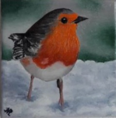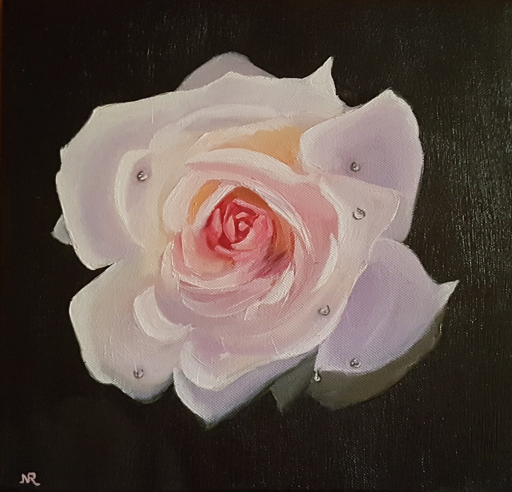 Huile sur toile30 x 30 …Les bosquets sont ravis, le ciel même s’étonneDe voir, sur le rosier qui ne veut pas mourir,Malgré le vent, la pluie et le givre d’automne,Les boutons, tout gonflés d’un sang rouge, fleurir….Nérée Beauchemin